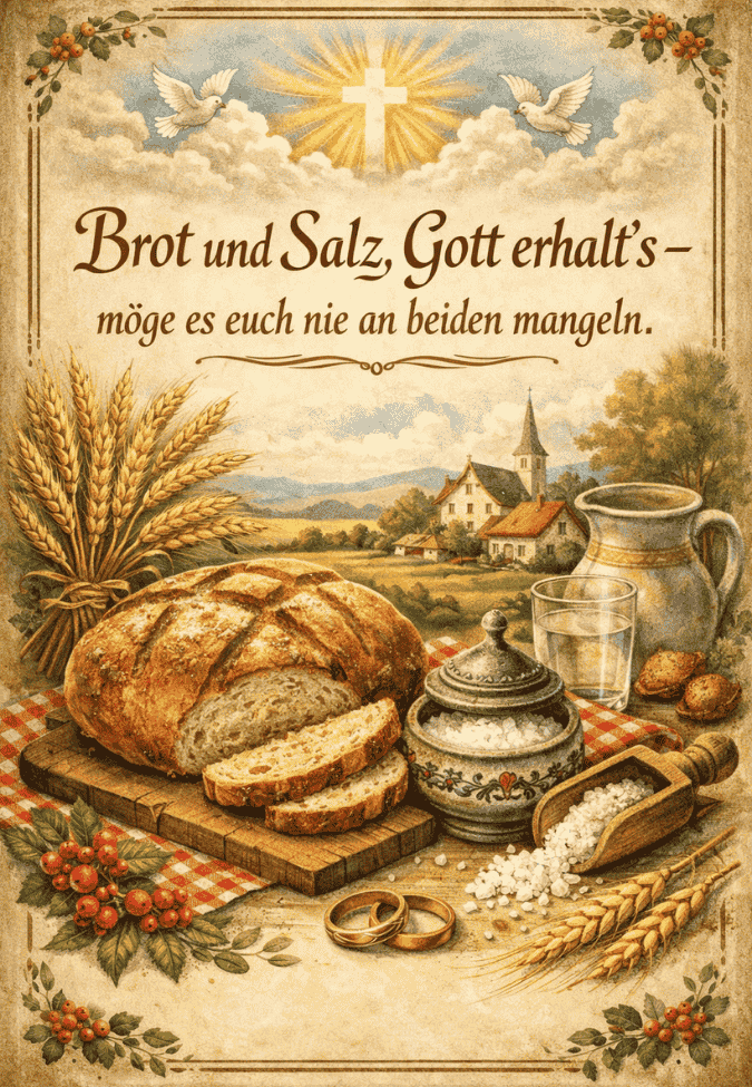 - „Brot und Salz, Gott erhalt’s – möge es euch nie an beiden mangeln.“